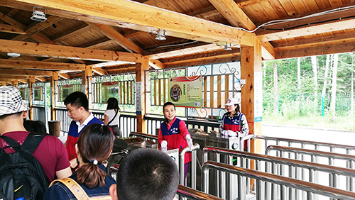 每年的7-8月份是长白山的旅游旺季,平均每天有2万人左右的游客到长白山领略天池美景、欣赏长白飞瀑、畅游地下森林……为缓解一线员工在旅游旺季的工作压力,并为来自祖国各地的游客提供更高品质的服务,公司的志愿者们深入到运营一线,开展服务工作,“红马甲”“小红帽”成为了长白山靓丽的风景。