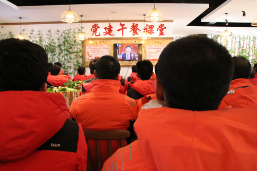 2018年3月5日,长白山旅游股份有限公司北景区党支部组织70余名党员、积极分子,在北景区老山门食堂集体观看了十三届全国人大一次会议开幕会。