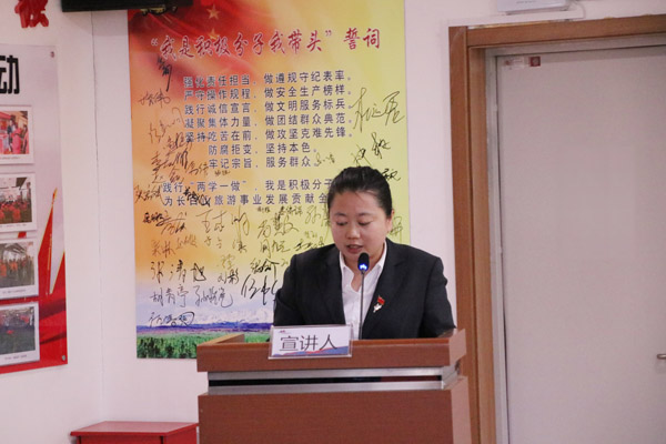 北景区党支部副书记王慧君说,“今天8名接地气得基层宣讲员宣讲了身边的安全典型和服务典型,党员和积极分子反响强烈。接下来,长白山北景区党支部会持续挖掘身边人、身边事,掀起争当长白山北景区党支部安全标杆、服务标杆正能量的热潮,继续开创长白山旅游事业的新篇章而努力奋斗”。